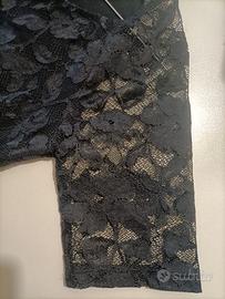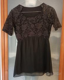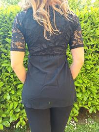 Maglia a maniche corte, nera, estiva per donna con maniche in pizzo. Lunghezza: 66 cm Larghezza torace: 38 cm