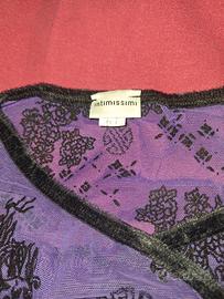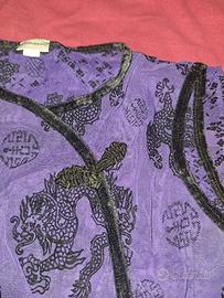 Maglia trasparente viola con disegni drago cinese neri e bordi neri in velluto. Marca Intimissimi taglia L, da usare come sottogiacca o in estate a vista, scollo a v taglio cinese.