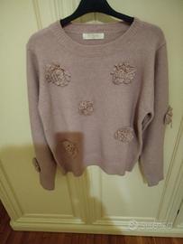 maglia donna invernale colore rosa con motivi di fiori applicati... taglia L.. modello comodo.. indossata solo una volta
