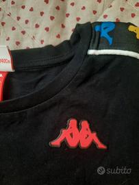 maglia kappa con logo stamoato dabanti e, nelle spalle, con tessuto più rigido. taglia:10A 140cm