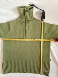 Maglia in 100% lana, marca Kappa (Robe di Kappa), taglia S, maniche lunghe, collo alto a mezza cerniera, colore verde melange. Etichetta del marchio anche esternamente, sul fianco. Mai usata. Condizioni e misure come da foto.