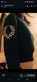 Maglione in lana originale Fred Perry da donna, colore verde scuro. Taglia S. Gelosamente conservata e protetta da cani e gatti e altri animali è in