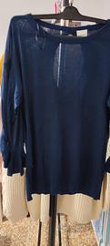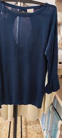 Maglia donna leggera x la primavera, colore blu notte, maniche 3/4 con gale
