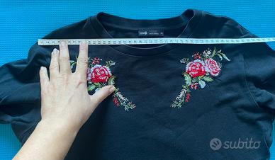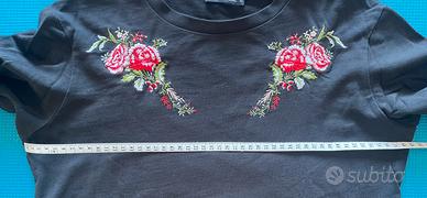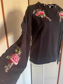 Deliziosa felpa leggera, garzata all'interno, con bellissimi ricami sullo scollo e sul fondo manica. Cotone 100%. In ottime condizioni.