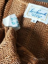 Maglia Luisa Spagnoli in 52 %lino e 48%viscosa, in tessuto tricot, con spacchetti laterali, colore caramello, tg S, bella da insossare sulla pelle oppure con una camicia come pullover, ottime condizioni