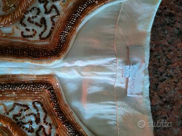 Maglia lunga donna Laltramoda taglia 44 senza maniche colore panna con disegno in perline e paillettes colore marrone/oro usato ma in buone condizioni