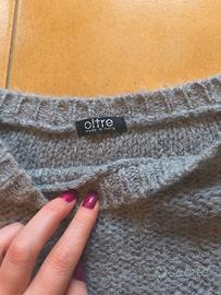 Descrizione: Maglia lunga a tunica (indossabile anche come mini abito) brand Oltre, taglia 50. Realizzata in maglia tricot color grigio melange con una texture morbida e scivolata. Il design è impreziosito da inserti sulle spalle in maglia bouclé più scura con sottili riflessi luminosi. Scollo a barchetta e rifiniture a costine spesse sull'orlo inferiore e sui giromanica. Condizione perfetta.