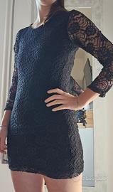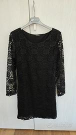 Vestito nero, con effetto pizzo su tutto il capo, manica a 3/4 unicamente con pizzo.