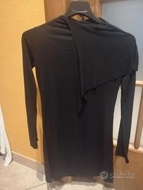 Maglia lunga, tipo vestito, nero, taglia unica, in viscosa, con collo lungo che cala su fronte e retro