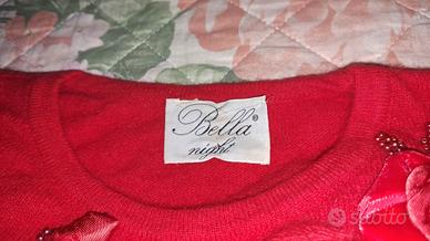 Vendo maglia maglietta donna rossa con ricami e rose a girocollo e manica lunga in lana e angora. Molto morbida. Taglia L.