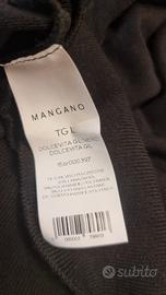Capo originale MANGANO - Taglia L - maglia donna autunno/inverno modello a pipistrello a collo alto con rouche di maglia lungo tutta la manica e trasparenze di tulle dalla spalla al polso.