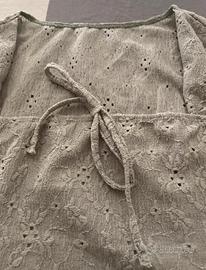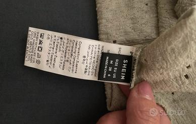 Maglietta da donna con scollo quadrato, maniche corte, decorazione fiocco, tessitura jacquard a tinta unita, taglia M, colore verde ( dalla foto nn si capisce bene), brand SHEIN, materiale poliestere ed elastane. Nuova mai indossata.