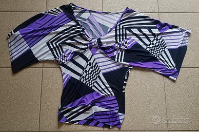 Maglia con fantasia geometrica e maniche a pipistrello.
