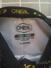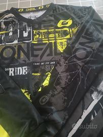 maglia da motocross è il modelloO'Neal Element Ride, caratterizzato dalla vivace colorazione nero e giallo neon.