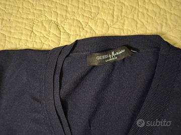 Maglia a maniche Lunghe di Guess By Marciano con scritta strass sul davanti, Blu Scura Taglia 4 da donna 80% in Viscosa 20 % Poliammide