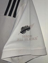 Maglia Maori All Blacks Adidas Rugby Taglia L/XL Etichetta dice L ma veste larga. Ampiezza delle spalle 48 cm Lunghezza 70 cm Foto n. 4 evidenzia usura su spallina sinistra, per il resto perfetta a parte qualche alone di sporco resistente.