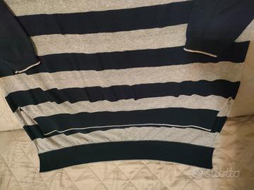 Maglia in cotone, bianca e blu, taglia XL