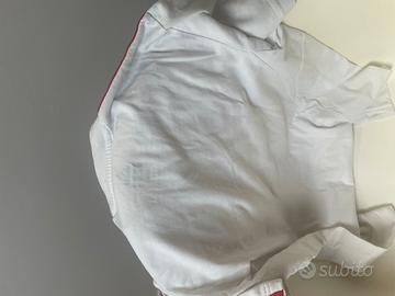 Bianca con loghi ricamati bande maniche rosse e nere sponsor fly emirates