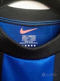 Maglia Nike Inter della stagione 1999/2000 di Ronaldo il fenomeno, presenta lo stemma del club ricamato sul lato cuore e il logo Nike a destra. Al centro, è posizionato lo sponsor commerciale Pirelli in bianco.