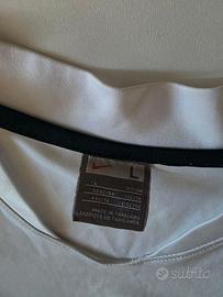 🔹️Maglia Nike sportiva, Uomo, manica corta, bianca con inserti neri, logo Nike sul petto e numero 7 sul retro.