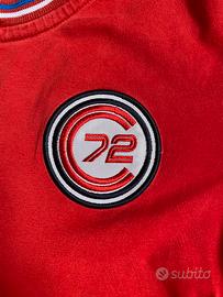 Realizzata in un tessuto leggero e confortevole, presenta dettagli a strisce blu e bianche sulle maniche e un iconico logo "C72" ricamato sul petto.