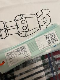 Maglietta Off-White x Kaws, modello Defining the grey area between black and white as the colour off-White. - Collaborazione con KAWS. - Stampa grafica sul retro. - Etichetta originale inclusa pero staccata.