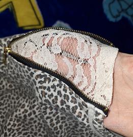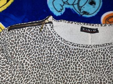 Maglia con stampa animalier, perfetta per aggiungere un tocco grintoso al tuo guardaroba. - Dettagli con zip sulle spalle e pizzo. - Maniche lunghe (FONDO MANICHE SCUCITE, DA RICUCIRE! Vedi ultima foto) - Fondo a costine.