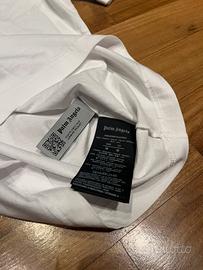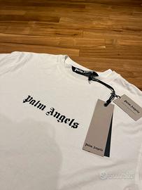 Maglia Palm Angels nuova con cartellino, mai indossata e in condizioni impeccabili. Colore bianco pulito, logo gotico frontale che spicca subito e dà un tocco distintivo. Un capo originale, di qualità, perfetto per chi vuole aggiungere al proprio guardaroba una t-shirt iconica, fresca e mai utilizzata.
