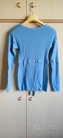 Vendo maglia premaman taglia M colore azzurro marca Prenatal. Usata poco e in ottime condizioni. Tessuto a costine molto morbido e che si adatta alla crescita della pancia.