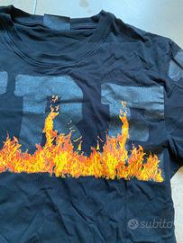 Questa taglia L veste regolare con misure standard (circa 52 cm di torace, lunghezza 72 cm), dunque adatta per chi cerca una calzata comoda ma non eccessivamente oversize. Il design nero con la grafica “in fuoco” è estremamente versatile: si abbina facilmente a jeans chiari, pantaloni cargo, joggers o addirittura a look total black per un impatto più aggressivo.