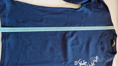 Maglia blu, taglia M, 100% cotone, vestibilità small, indossata pochissimo, come nuova. Ideale per la mezza stagione. Misure: spalle 38 cm, lunghezza 61, manica 58.