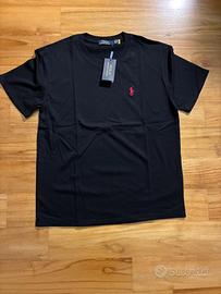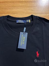 Maglietta Ralph Lauren nera, modello semplice ed essenziale. Tessuto morbido e confortevole, perfetta per un look casual o da abbinare a qualsiasi outfit. Logo iconico ricamato sul petto. Vestibilità regolare.