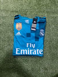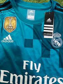 Vendo maglia Real Madrid stagione 2017/2018, versione away blu con nome e numero Ronaldo ⚽ •Condizioni: ottime/nuova (specifica tu) •Marca: Adidas •Patch Champions League •Badge FIFA Campioni del Mondo •Sponsor Fly Emirates Maglia della stagione della Champions vinta 🏆 📏 Taglia: L 📦 Spedizione disponibile