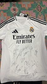 In vendita: Maglia autentica Real Madrid Home stagione 2024/2025, con firme originali di tutta la squadra, inclusi campioni come Kylian Mbappé, Jude Bellingham, Vinícius Jr, Luka Modrić e altri.