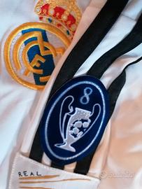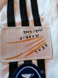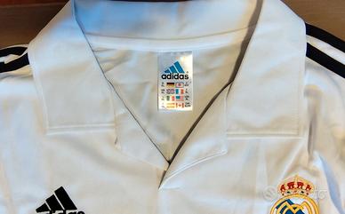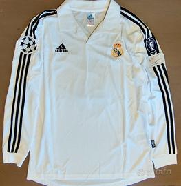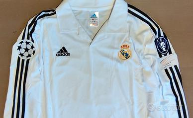 Maglia del Real Madrid stagione 2001-2002, quella della finale di Champions League raggiunta eliminando Bayern Monaco e Barcellona e poi vinta per 2-1 contro il Bayer Leverkusen, con l'iconico gol al volo proprio di Zinedine Zidane su cross di Roberto Carlos.