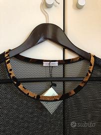 Bordi leopardato scuro nelle maniche e nella scollatura.