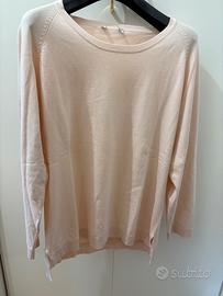 Maglia color rosa cipria, molto morbido e leggero, perfetto per mezza stagione o da indossare sotto giacche e cappotti. Modello con maniche raglan e vestibilità comoda. In buone condizioni, senza difetti evidenti (normali segni di utilizzo). Ideale per look casual o più eleganti.
