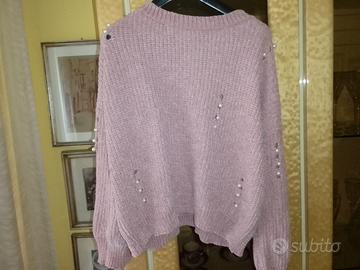 maglia rosa confetto con perle al tatto estremamente morbida unigirl paris tu spalle 60 sotto asc 75 lunga 55cm