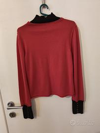 Maglia rossa a maniche lunghe con dettagli neri. Taglia: M. Città: Bologna. - Girocollo nero. - Polsini neri.