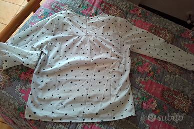 Maglia a maniche lunghe con bottoncino dietro il collo e sui polsini. Composto da una maglia bianca sotto e maglia con stelle blu su sfondo bianco. Marca Sarabanda, taglia a 12/13 anni. Usato ma tenuto benissiomo.