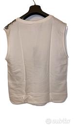 Maglia smanicata con scollo rotondo e dettagli sulle spalle. - Taglia XL - Colore bianco - Dettagli metallici sulle spalle Taglia XL / 42 / 14 Colore Bianco