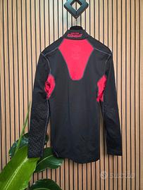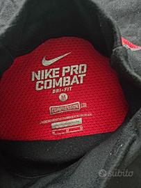 Maglia tecnica originale Nike Pro Combat DRI-FIT, pensata per l’attività fisica intensa durante le stagioni fredde. Modello a maniche lunghe con collo a lupetto e inserti in mesh traspirante. Design ergonomico e compressivo per massima libertà di movimento e performance. Le zone del petto, della schiena e delle maniche sono realizzate con un tessuto più spesso rispetto ai lati, offrendo una barriera extra contro il vento e il freddo. Questo rende la maglia perfetta per allenamenti all’aperto in autunno e inverno. Presente un piccolo filo fuoriuscito nella parte posteriore (vedi 4° foto). Non si tratta di un buco né di un danno funzionale, la cucitura è intatta e il difetto è puramente estetico. Il capo è comunque in ottime condizioni, senza macchie né strappi. Ideale per corsa, palestra, calcio o allenamento outdoor