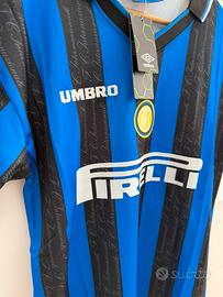 Modello classico a strisce nere e blu Umbro, stile anni ‘90, perfetta per collezionisti e veri tifosi.