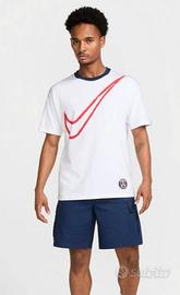 Vendo nuova mai usata con etichetta maglietta della squadra di calcio francese PSG Paris saint germain nella taglia M,veste un po' più ampia rispetto alle solite Nike,per questo la sto vendendo