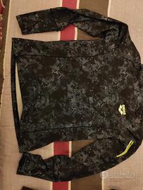 Maglia termica dry skin run arena uomo taglia S con doppio collo integrato tasca con zip sul braccio, maniche con inserto per il pollice misure larghezza spalle 48,larghezza torace 50 lungjezza dalla spalla 58 lunghezza manica 68 praticamente nuova, indossata una volta