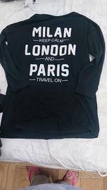maglia nera a maniche lunghe terranova taglia L con scritte bianche che riportano I nomi di Milano Londra e Parigi in ottime condizioni