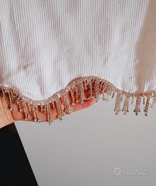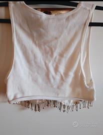 Crop top bianco a costine con frange di perline di Zara.