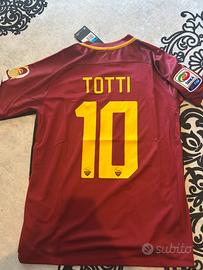 Vendo maglia di Francesco Totti, storica bandiera della AS Roma. Modello stagione 2016, colore arancione , taglia M. Nome e numero stampati sul retro: Totti 10. Logo della Roma e sponsor ben visibili, condizioni nuove