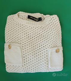 - maglia traforata colore bianco a maniche lunghe con bottoni oro e tasche sul davanti