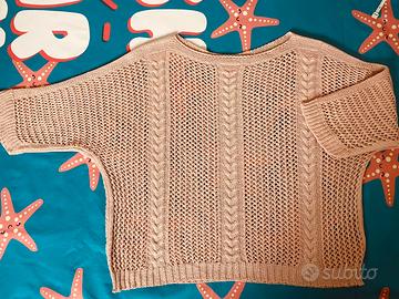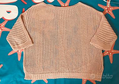 Maglia traforata effetto crochet narca Glitter taglia unica, colore rosa cipria e manica a 3/4 scollo a barchetta. Nuova perfetta mai indossata. Vestibilità morbida. Perfetta in primavera/estate